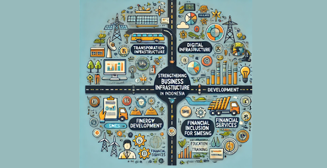 Memperkuat infrastruktur bisnis di Indonesia membutuhkan upaya yang terpadu dan berkelanjutan, baik dari pemerintah, sektor swasta, maupun masyarakat. Dengan memperkuat infrastruktur transportasi, digital, energi, keuangan, dan pendidikan, Indonesia dapat menciptakan iklim bisnis yang lebih kondusif dan siap bersaing di kancah global. Tentunya, semua ini memerlukan kolaborasi yang erat antara berbagai pihak untuk mewujudkan ekosistem bisnis yang lebih baik dan lebih efisien di masa depan.